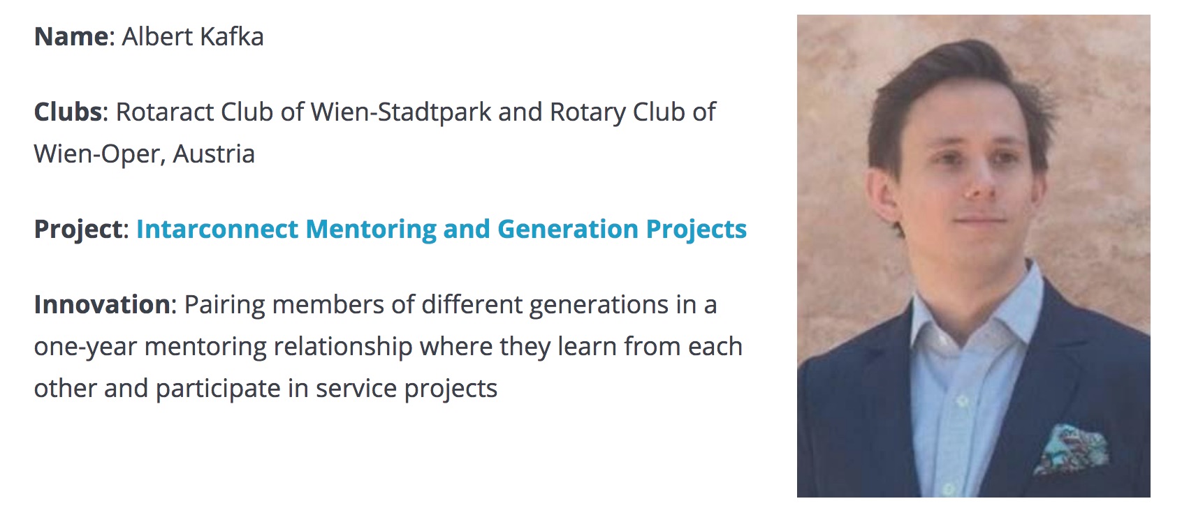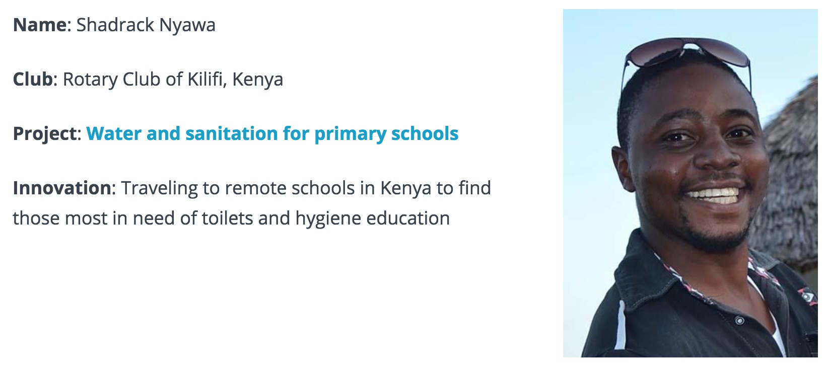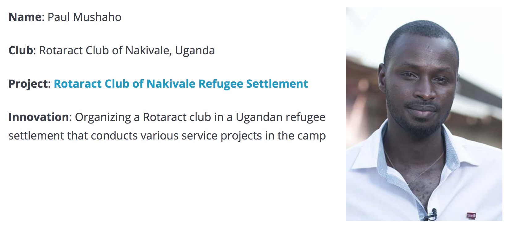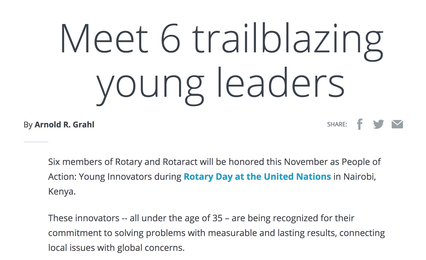 ‘Meet 6 trailblazing young leaders’, September 2018, by Arnold R. Grahl, on ‘Rotary International’, Presentation of the Six members of Rotary and Rotaract will be honored this November as People of Action: Young Innovators during Rotary Day at the United Nations in Nairobi, Kenya.