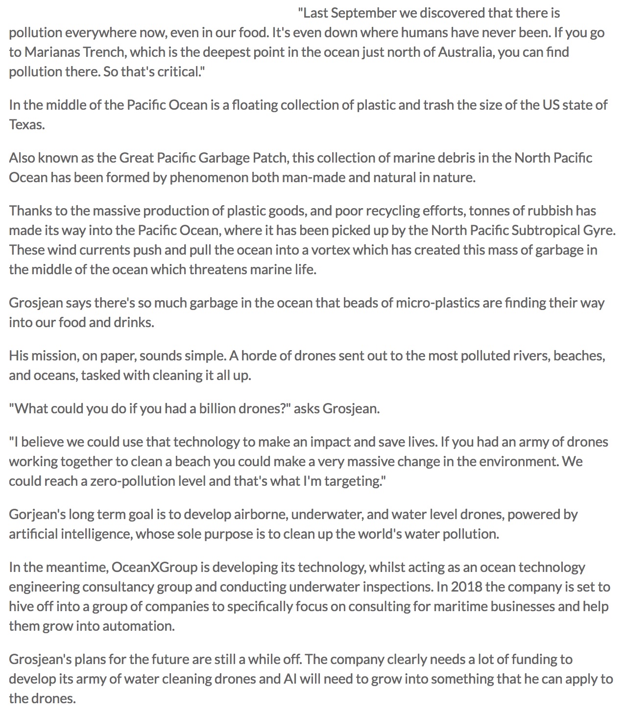 ‘One Melbourne entrepreneur’s mission to clean up the world’s oceans’ Article Written on the 12 January 2018 by David Simmons, published in ‘Business News Australia’: Interview for Young Leader using high-tech technology to protect the environment.