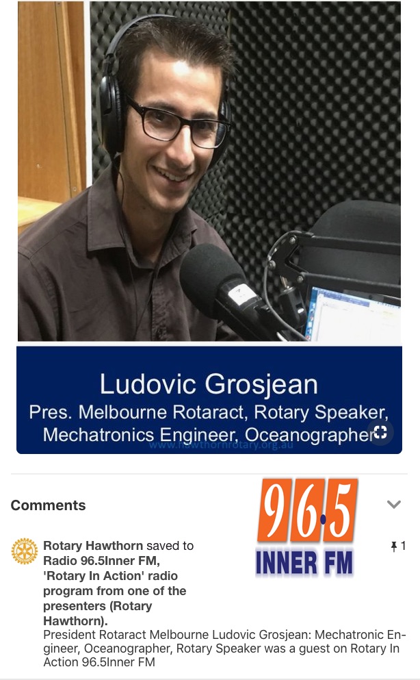 ‘Rotary In Action‘ on ‘InnerFM Radio, 14th November 2017: Release information about innovative technology to protect the environment we are developing as well as the O’Bike Fishing operation conducted with Melbourne City Rotaract Club.